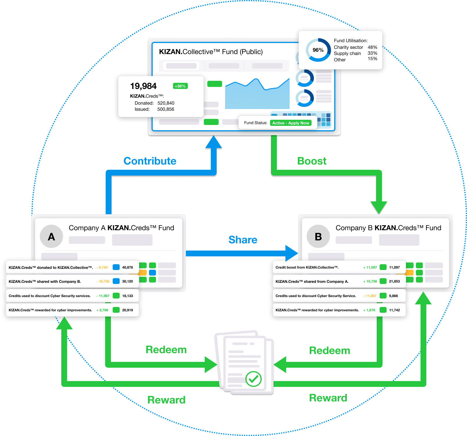 With KIZAN.Collective™, businesses can share, buy, or contribute KIZAN.Creds™ to help startups or SMEs strengthen their security and grow.